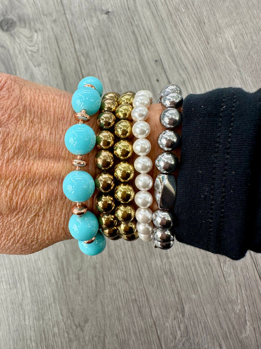 Bracciale in Argento Rosato con Perle e Giada Azzurra e Verde