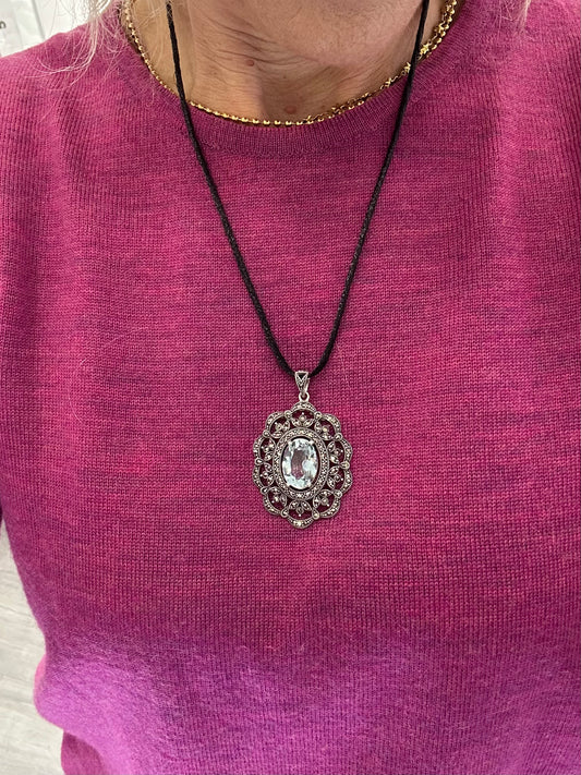Pendente Vintage in Argento 925 con Topazio Azzurro