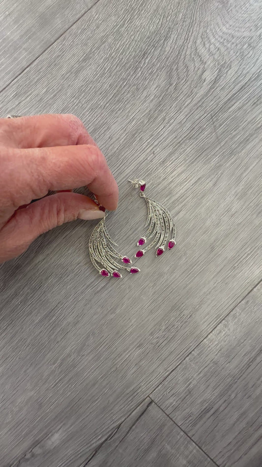 Orecchini in Argento con Corallo, Perla Naturale e Radice di Rubino