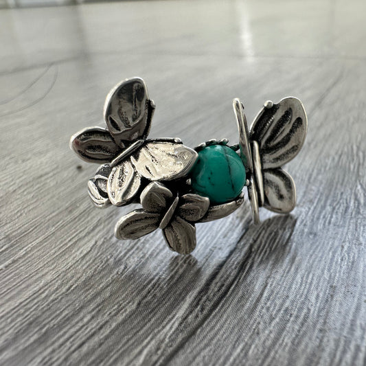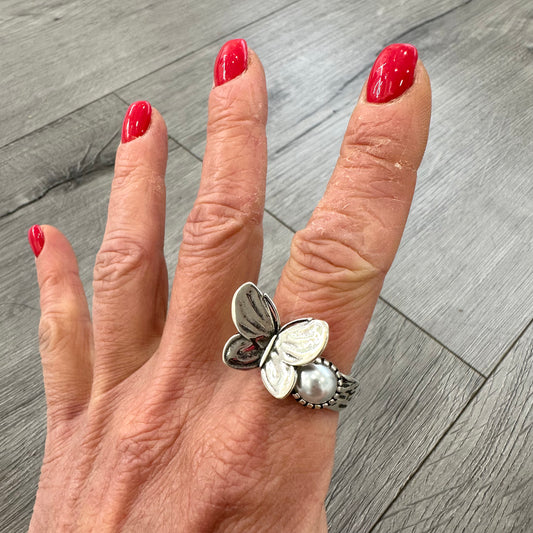Anello in Argento 925 con Farfalla e Perla Iridescente
