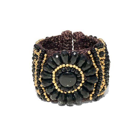 Bracciale Artigianale con Perline Nere e Dorate – Lavorazione Macramè