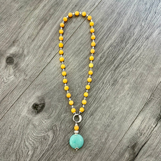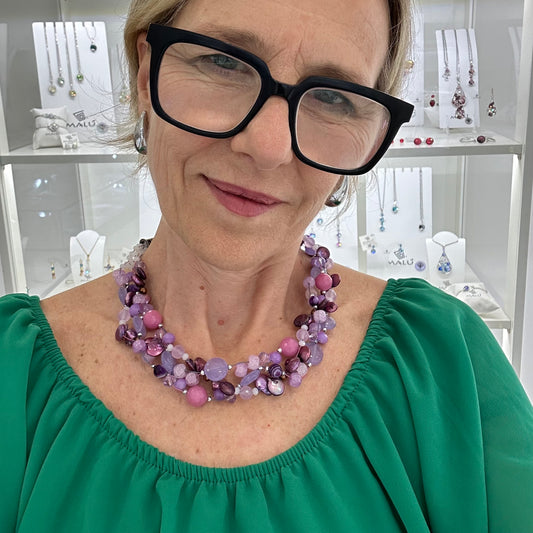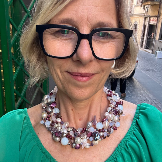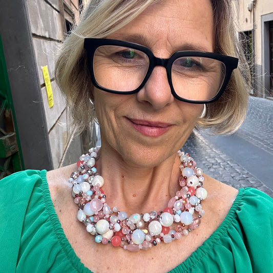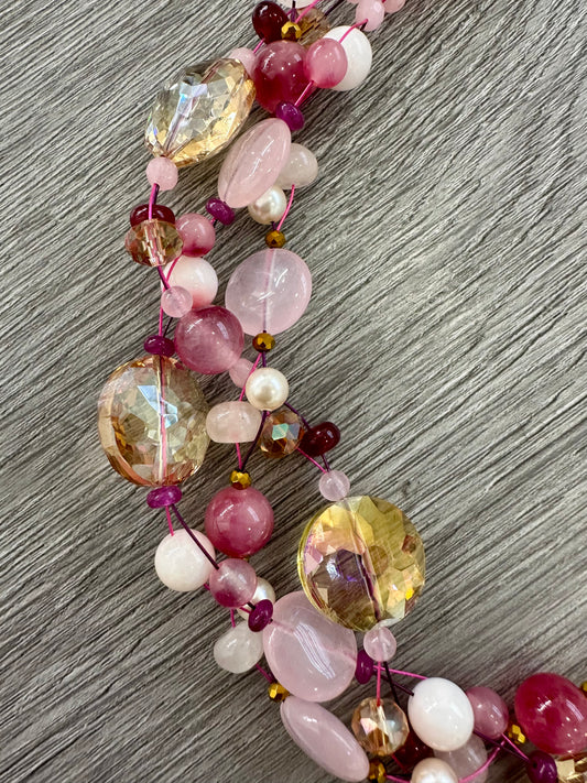 Collana Intrecciata con Quarzo rosa e pietre color Melograno