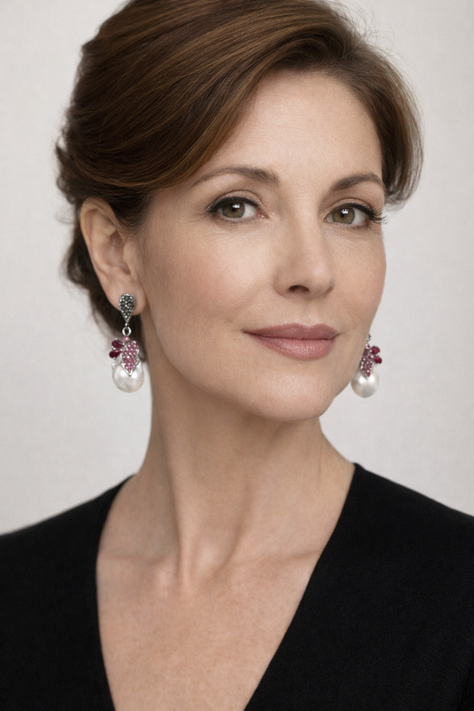 Orecchini in Argento con Corallo, Perla Naturale e Radice di Rubino