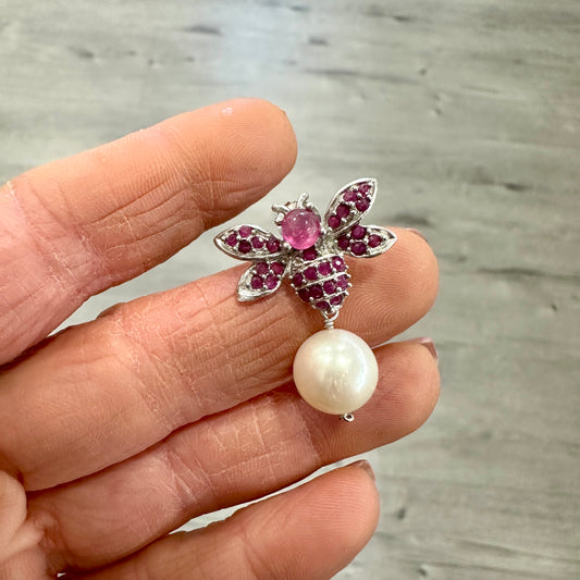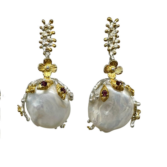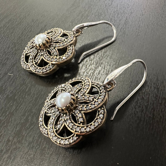 Orecchini in Argento 925 con Perla. Design a Fiore