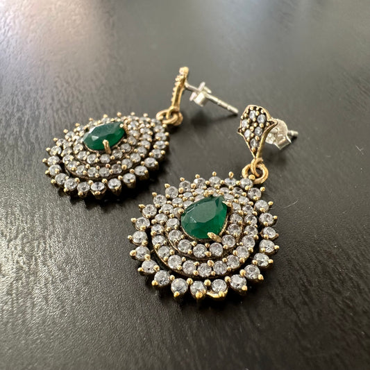 Orecchini Vintage in Argento 925 con Radice di Smeraldo