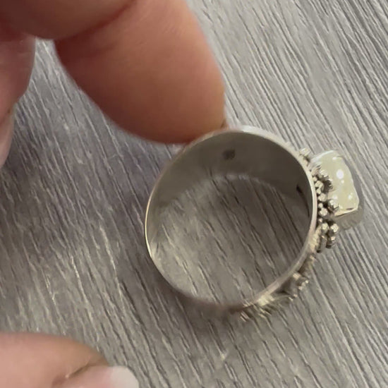 Anello in argento con Pietra di Luna dal carattere artigianale e boho chic.