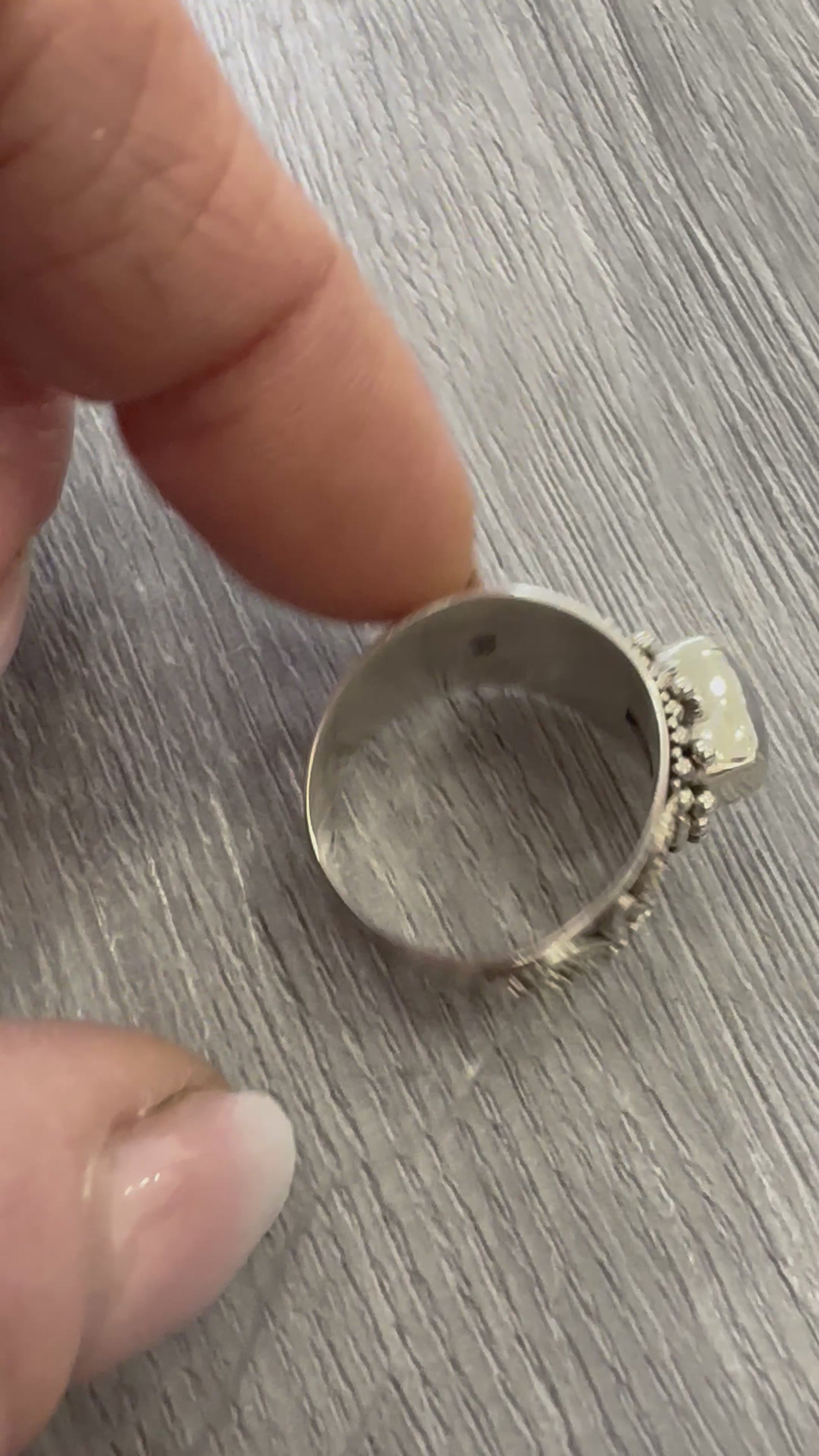 Anello in Argento con Pietra di Luna – Fascia Larga Artigianale Boho Chic