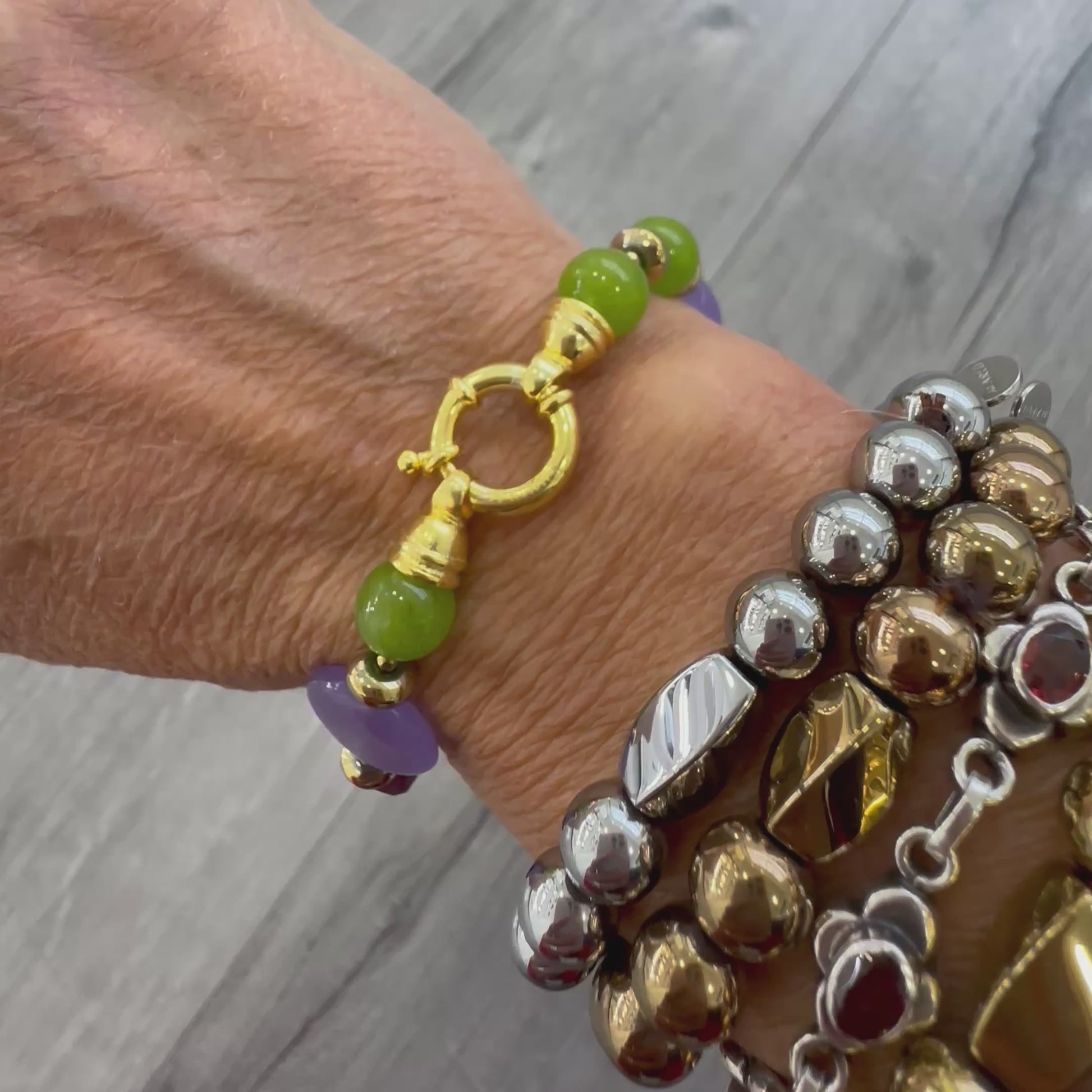 Bracciale in Argento con Giada Verde e Viola, Tormalina e Ematite Dorata