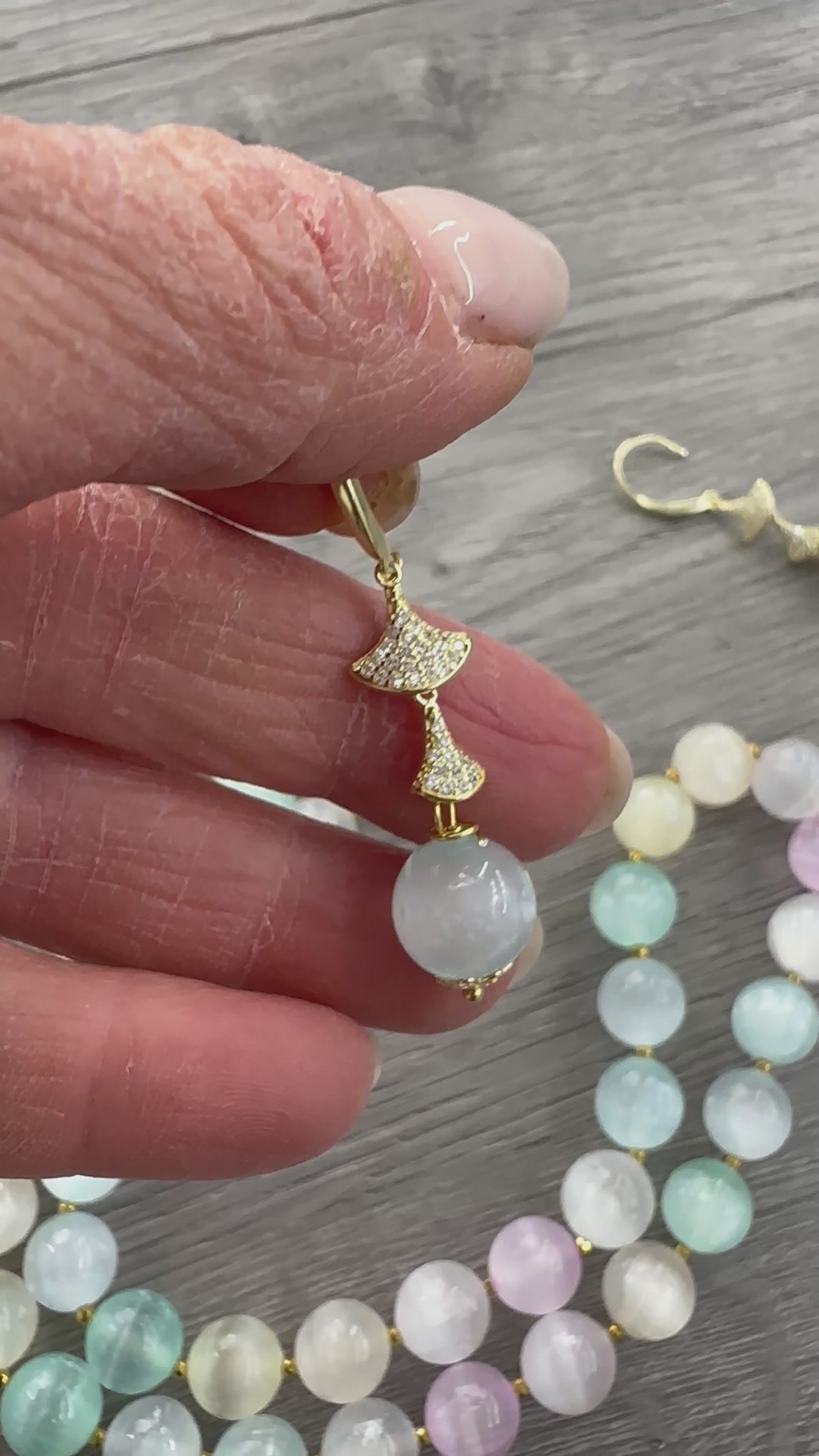 Collana di Selenite Multicolore, Ematite e Argento 925 Dorato
