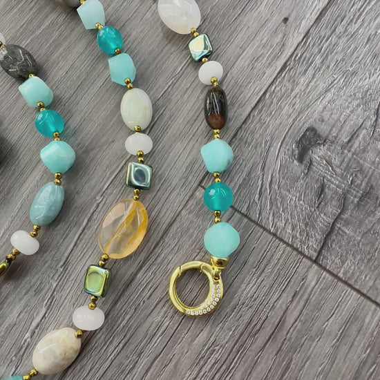 Collana in Amazzonite, Quarzo Citrino, Ematite e Argento Dorato