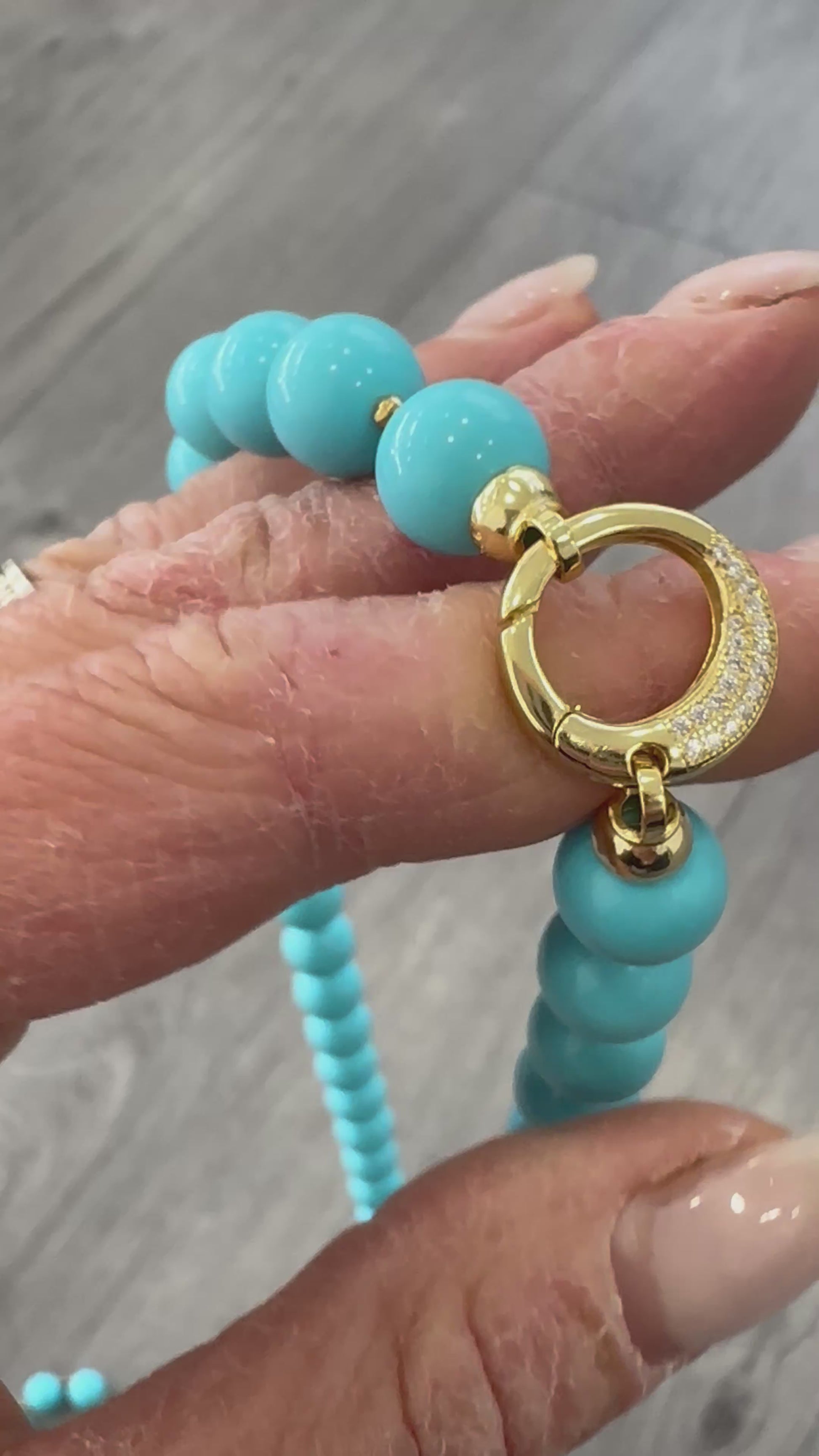 Collana in Pasta di Turchese e Ematite Dorata con chiusura in Argento