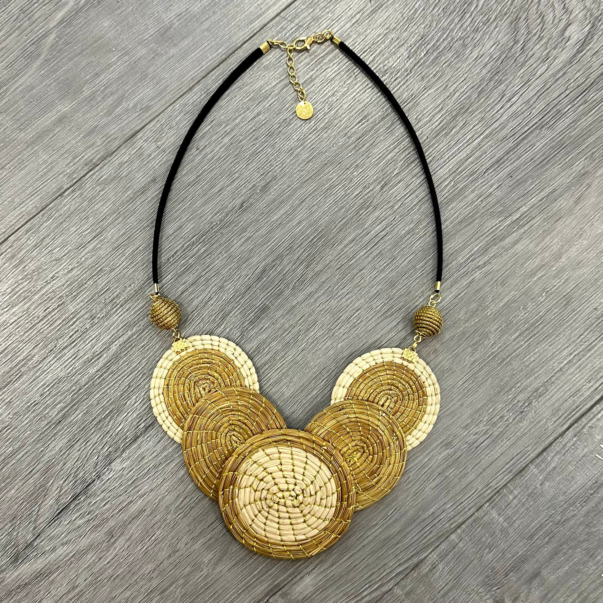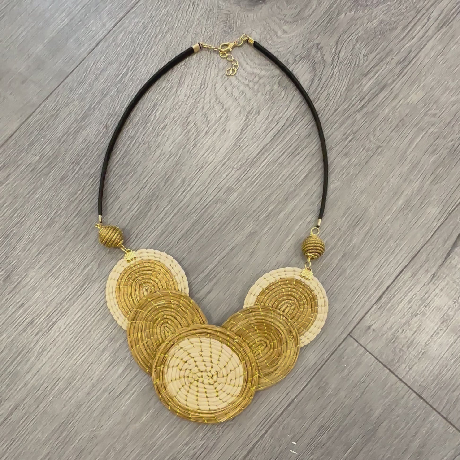 Collana artigianale, fatta a mano con Oro Vegetale, (Capim Dourado), una fibra vegetale la cui lavorazione e' tipica degli Indios brasiliani