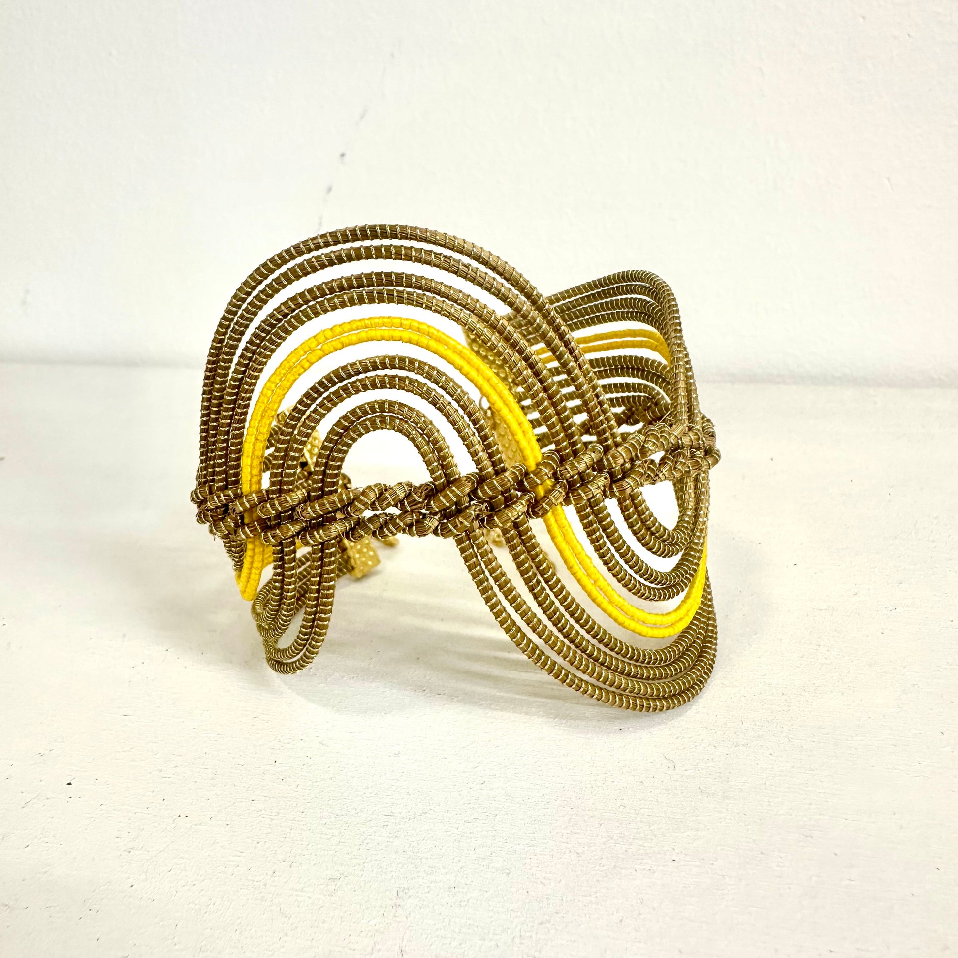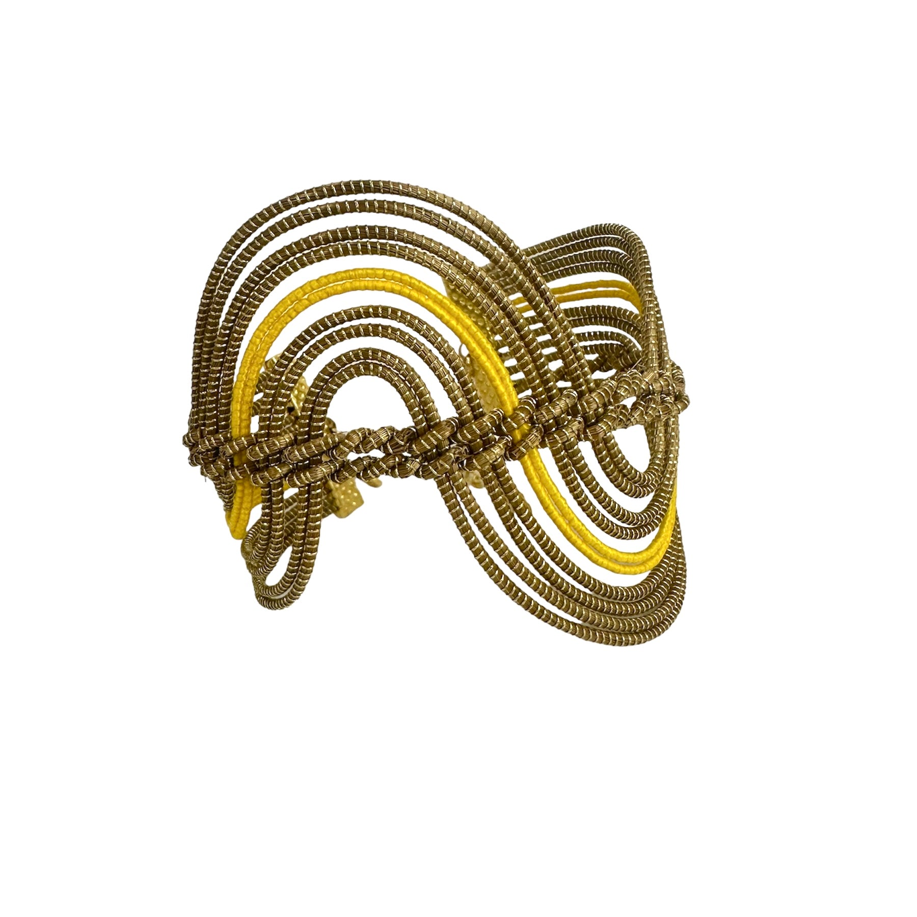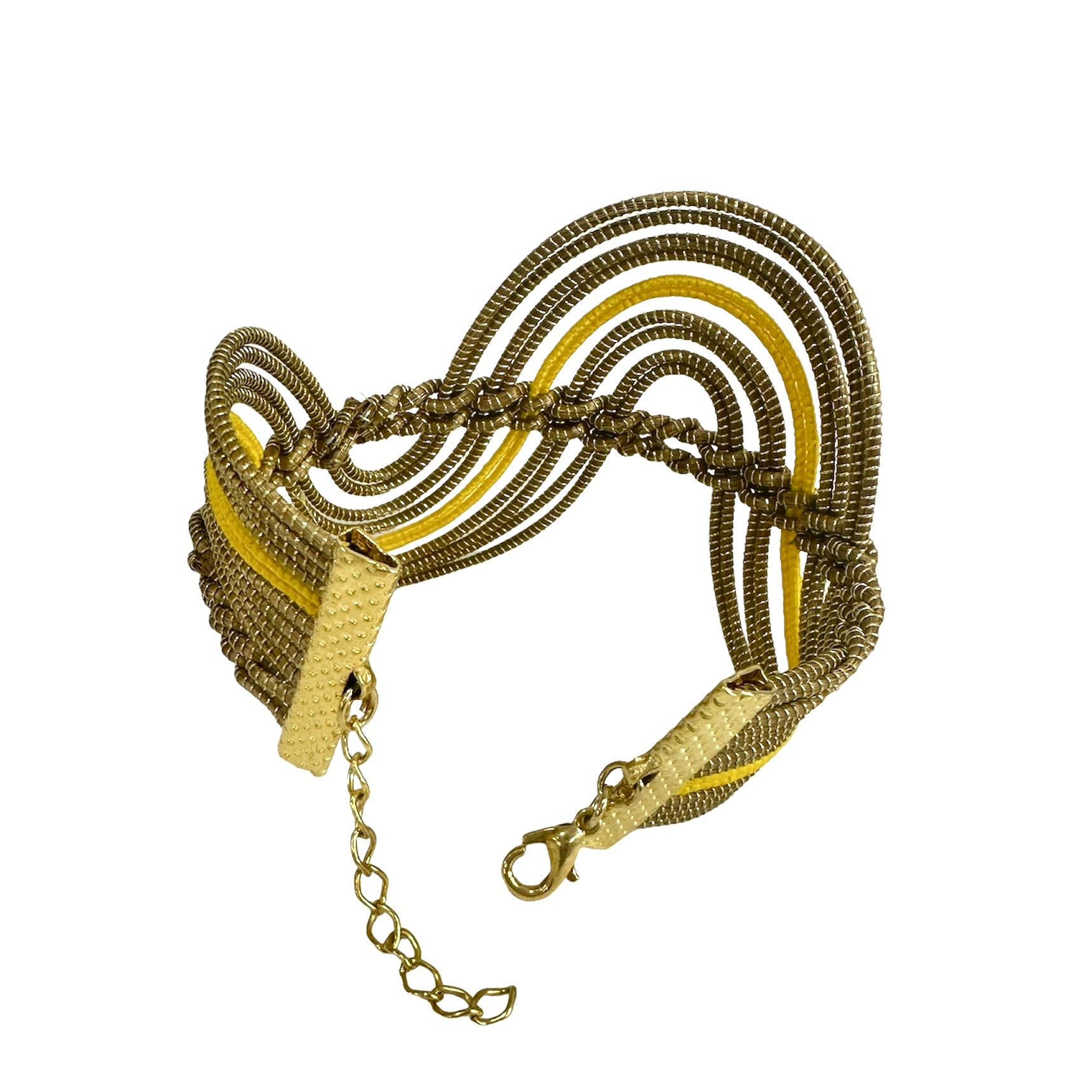 Il bracciale è un'opera d'arte artigianale, realizzato con la preziosa fibra di Capim Dourado dell'Amazzonia brasiliana e un delicato cordonetto giallo.