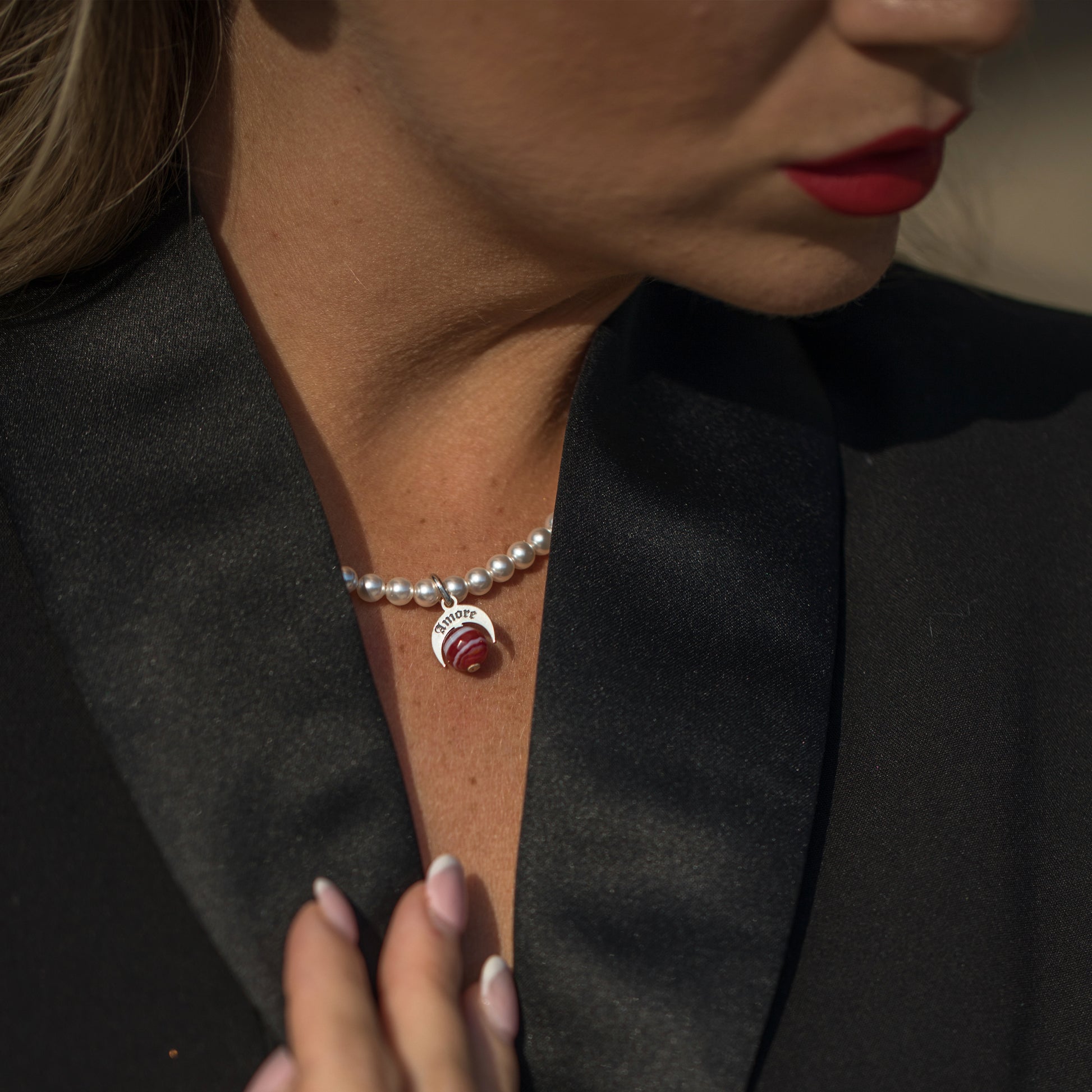 Perle, Argento 925 e pietra dura Agata Rossa Striata