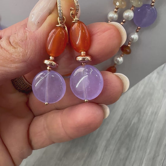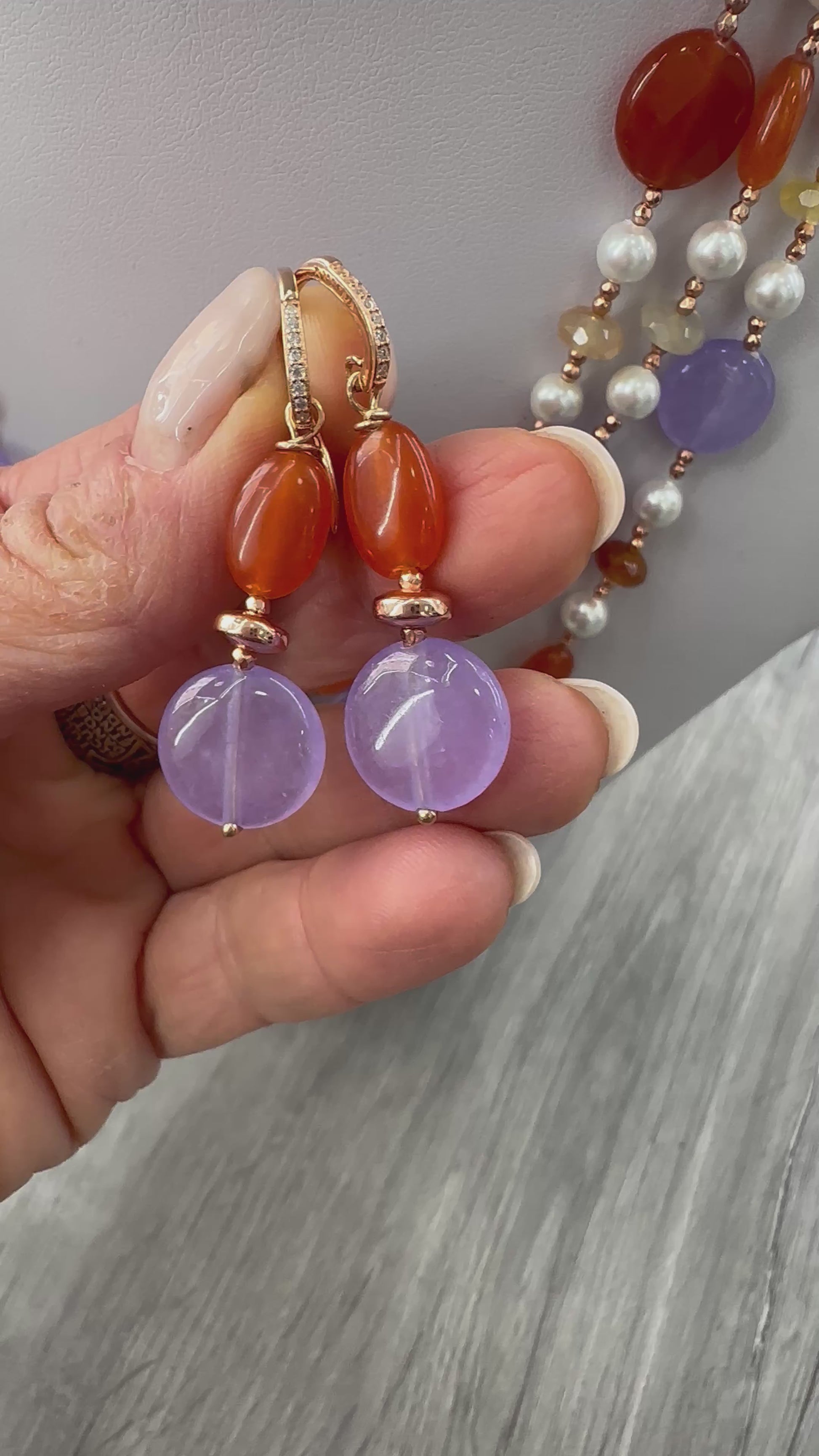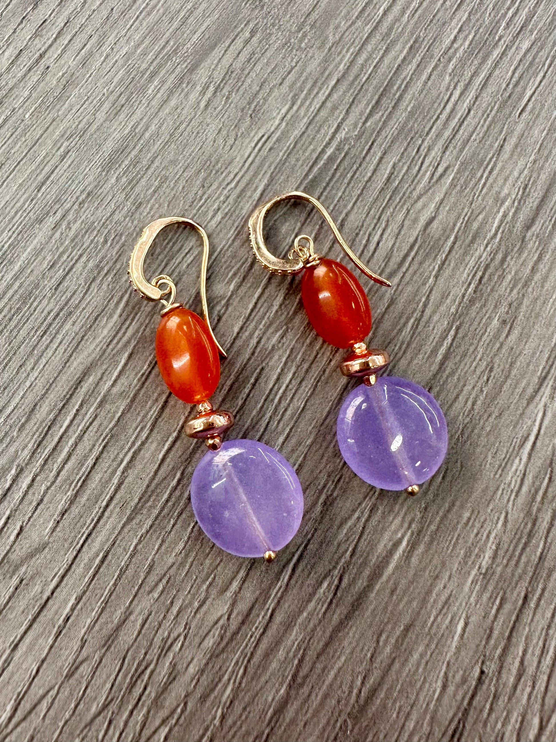 Orecchini Argento 925 con Corniola, Giada Viola e Ematite