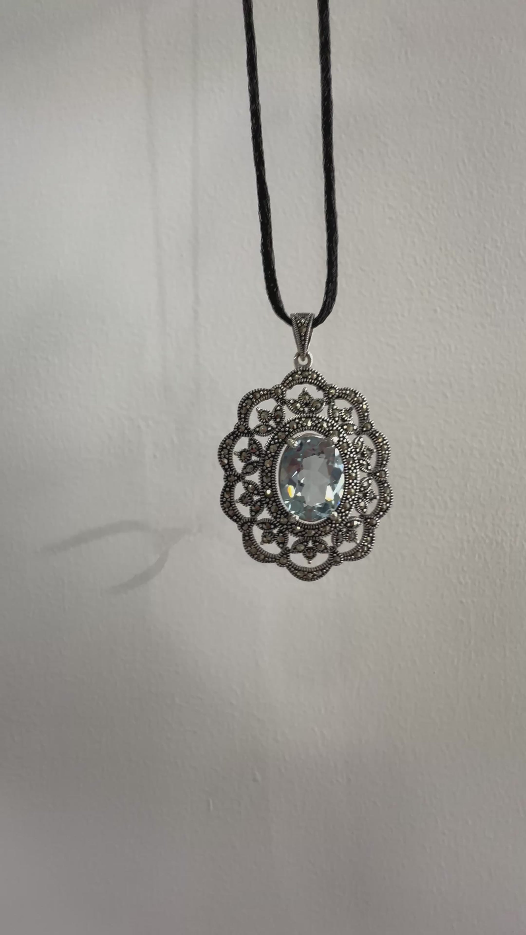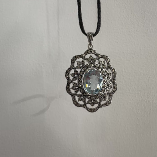 Pendente Vintage in Argento 925 con Topazio Azzurro